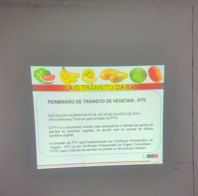 Desta vez, o diretor falou aos colaboradores da Central responsáveis pela fiscalização na entrada dos caminhões de carga. Trazendo cópias de documentos e com uma apresentação bem didática, Magnos Lacerda tirou todas as dúvidas e colocou o Idiarn à disposição para suporte na fiscalização de entrada de bananas na central.